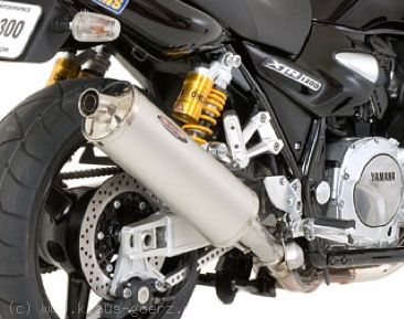 The brand new XJR has serially a 4-1 exhaust system first with slip-on muffler. The oval BOS mufflers are available with polished aluminium, polished stainless stell or carbon sleeve. All mufflers have an E-approval mark and are available with or without catalyser. Allowed for street legal use are only mufflers with catalyser (extra charge 60.-€). The DB-killer which is inserted in the back of the muffler can be take out easily at racetracks. Even legally the BOS muffler has a lot to offer, the street legal version perfroms a plus of more than 10bhp and 13Nm more torque direct noticing during driving.